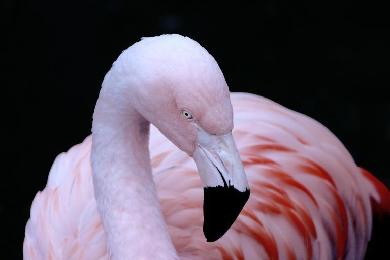 Keywords: flamingo pink bird beautiful elegant curves beak head feathers