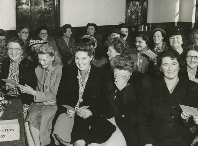 | Keywords: the women's library thewomenslibrary hires indoor 5FWI/B/2/2/04/005 Photograph, printed, paper, monochrome. Inscription on back: R37 Music and Drama, Flanstead WI, Herts. Community singing. Photograph of women sitting in rows. 5FWI/B/2/2/04/005 Photograph, printed, paper, monochrome. Inscription on back: R37 Music and Drama, Flanstead WI, Herts. Community singing. Photograph of women sitting in rows. | ||||