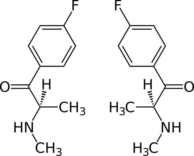 Keywords: (±)-Flephedrone 4-isomer Enantiomers Structural Formulae.svg en ± -Flephedrone_4-isomer_Enantiomers_Structural_Formulae own Jü 2010-04-02 other fields + Fluoromethcathinones
