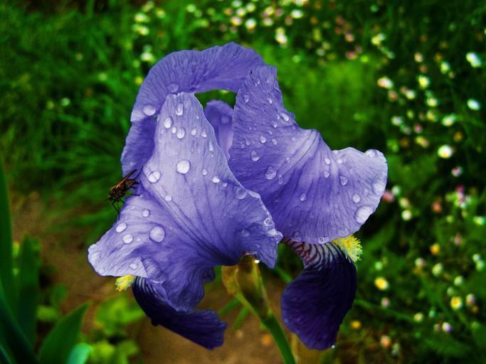Keywords: fleur-de-lis raindrops bluish-violet flower spring