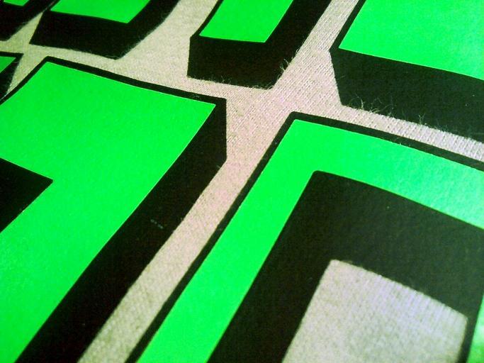 | Keywords: Flex-foli neon-green black.jpg en Cotton fabric with a neon green and black flex-foil printing This closeup view is supposed to depict the smooth surface of flex-foils de Baumwollgewebe mit einem neon-grünen und schwarzen Flexfolien-Druck Diese Nahaufnahme soll die glatte Oberfläche von Flexfolien anschaulich machen own Stefan Nagy 2011-02-03 Cc-zero Printed textiles Plastic objects | ||||