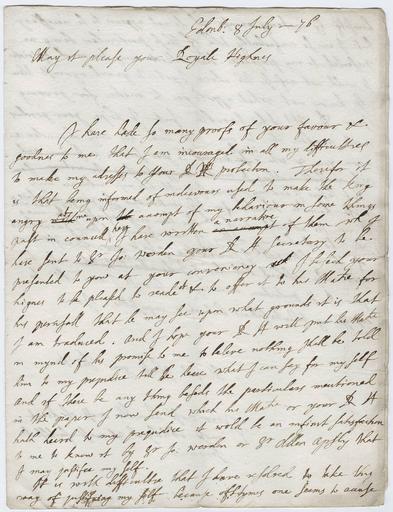 | Keywords: Flickr - Beinecke Flickr Laboratory - (Letter addressed to) your Royale Highness, 1676 July 8, Edinburgh (1).jpg 2 p 23 cm Folder or box number Folder 1839 Subjects Charles II King of England 1630-1685 Genre/Form Correspondence Manuscripts Cite as Beinecke Rare Book and Manuscript Library Yale University Repository http //www library yale edu/beinecke Beinecke Rare Book Manuscript Library Yale University Bibliographic Record Number 2032735 Call Number GEN MSS 89 View our Record http //beinecke library yale edu/dl_crosscollex/brbldl_getrec asp fld bib id 2032735 Permalink http //www flickr com/photos/25923731 N05/3118424573/ Letter addressed to your Royale Highness 1676 July 8 Edinburgh 2008-12-18 14 09 http //www flickr com/people/25923731 N05 Beinecke Flickr Laboratory PD-old Scanned English texts Humanistic handwriting Manuscripts in the United States Images from the Beinecke Rare Book and Manuscript Library |