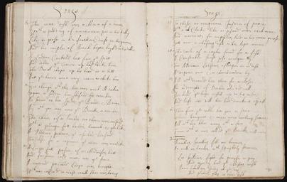 | Keywords: Flickr - Beinecke Flickr Laboratory - (Poems), (ca. 1620-1640) (1).jpg Manuscript on paper in secretary hand containing over one hundred poems by Herrick Jonson Corbet Raleigh May Gill and many unidentified authors Page/Caption p 280-281 Songs ca 1620-1640 1 v 295 p 19 x 15 cm Subjects Corbet Richard 1582-1635 Gill Alexander 1597-1642 Herrick Robert 1591-1674 Jonson Ben 1573 -1637 May Thomas 1595-1650 English poetry Epigrams English Love poetry English Occasional verse English Verse satire English Genre Commonplace books Manuscripts Poems Cite as James Marshall and Marie-Louise Osborn Collection Beinecke Rare Book and Manuscript Library Yale University Repository Beinecke Rare Book Manuscript Library Yale University Bibliographic Record Number 2031702 Call Number Osborn b356 http //www flickr com/photos/25923731 N05/2436928224/ Poems ca 1620-1640 2008-04-23 09 22 http //www flickr com/people/25923731 N05 Beinecke Flickr Laboratory Flickr - Beinecke Flickr Laboratory - Poems ca 1620-1640 1 cropped jpg PD-old Secretary hand Manuscripts in the United States Images from the Beinecke Rare Book and Manuscript Library |