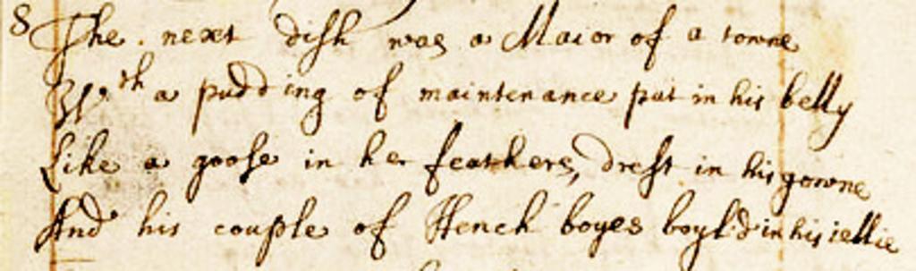 | Keywords: Flickr - Beinecke Flickr Laboratory - (Poems), (ca. 1620-1640) (1) (cropped).jpg Manuscript on paper in secretary hand containing over one hundred poems by Herrick Jonson Corbet Raleigh May Gill and many unidentified authors Page/Caption p 280-281 Songs ca 1620-1640 1 v 295 p 19 x 15 cm Subjects Corbet Richard 1582-1635 Gill Alexander 1597-1642 Herrick Robert 1591-1674 Jonson Ben 1573 -1637 May Thomas 1595-1650 English poetry Epigrams English Love poetry English Occasional verse English Verse satire English Genre Commonplace books Manuscripts Poems Cite as James Marshall and Marie-Louise Osborn Collection Beinecke Rare Book and Manuscript Library Yale University Repository Beinecke Rare Book Manuscript Library Yale University Bibliographic Record Number 2031702 Call Number Osborn b356 http //www flickr com/photos/25923731 N05/2436928224/ Poems ca 1620-1640 2008-04-23 09 22 http //www flickr com/people/25923731 N05 Beinecke Flickr Laboratory PD-old Flickr - Beinecke Flickr Laboratory - Poems ca 1620-1640 1 jpg cropped Daniel Baránek Flickr - Beinecke Flickr Laboratory - Poems ca 1620-1640 1 jpg Secretary hand Manuscripts in the United States Images from the Beinecke Rare Book and Manuscript Library |