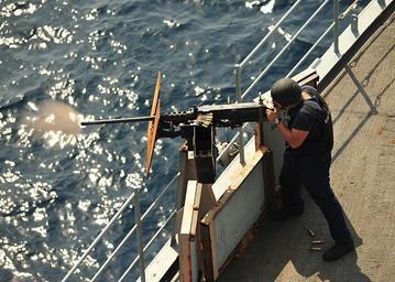 | Keywords: Flickr - Official U.S. Navy Imagery - Sailor fires machine gun aboard ship..jpg GULF OF ADEN Sept 15 2012 Information Systems Technician Seaman Daniel Morrow fires a 50-caliber machine gun during a small craft attack team live-fire exercise aboard the amphibious dock landing ship USS Gunston Hall LSD 44 Gunston Hall with the embarked 24th Marine Expeditionary Unit 24th MEU is part of the Iwo Jima Amphibious Ready Group and is deployed supporting maritime security operations and theater security cooperation efforts in the U S 5th Fleet area of responsibility U S Navy photo by Mass Communication Specialist 3rd Class Jonathan Sunderman/Released 120915-N-XO436-120 Join the conversation http //www facebook com/USNavy www facebook com/USNavy http //www twitter com/USNavy www twitter com/USNavy navylive dodlive mil http //www flickr com/photos/usnavy/8005999447/ Sailor fires machine gun aboard ship 2012-09-20 08 44 http //www flickr com/people/56594044 N06 Official Navy Page from United States of America Mass Communication Specialist 3rd Class Jonathan Sunderman/U S Navy U S Navy photo PD-USGov-Military-Navy Official U S Navy Imagery http //flickr com/photos/56594044 N06/8005999447 2012-11-12 08 54 21 cc-by-2 0 Images from United States Navy to check United States Navy images |