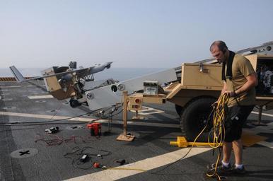 | Keywords: Flickr - Official U.S. Navy Imagery - A contractor prepares a Scan Eagle unmanned aerial vehicle launch..jpg  U S 5TH FLEET AREA OF RESPONSIBILITY Aug 26 2012 A contractor aboard Afloat Forward Staging Base Interim USS Ponce AFSB I 15 prepares a Scan Eagle unmanned aerial vehicle launch Scan Eagle is an unmanned aerial vehicle system designed to provide multiple surveillance reconnaissance data and battlefield damage assessment missions Ponce formerly designated as an amphibious transport dock ship was converted and reclassified in April to fulfill a long-standing U S Central Command request for an AFSB to be located in its area of responsibility U S Navy photo by Mass Communication Specialist 2nd Class Toni Burton/Released 120826-N-QD718-005 Join the conversation http //www facebook com/USNavy www facebook com/USNavy http //www twitter com/USNavy www twitter com/USNavy http //navylive dodlive mil navylive dodlive mil http //www flickr com/photos/usnavy/7887373170/ A contractor prepares a Scan Eagle unmanned aerial vehicle launch 2012-08-26 07 43 http //www flickr com/people/56594044 N06 Official Navy Page from United States of America Mass Communication Specialist 2nd Class Toni Burton/U S Navy U S Navy photo PD-USGov-Military-Navy Official U S Navy Imagery http //flickr com/photos/56594044 N06/7887373170 2012-11-12 22 15 50 cc-by-2 0 Images from United States Navy to check United States Navy images USS Ponce LPD-15 |