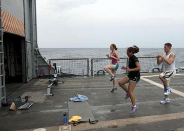 Keywords: Flickr - Official U.S. Navy Imagery - Sailors PT..jpg CARIBBEAN SEA July 30 2012 Lt j g Kellye Quirk left Ensign Clarissa Carpio and Operations Specialist 2nd Class Paul Grace exercise on the flight deck of the Oliver Hazard Perry-class guided-missile frigate USS Underwood FFG 36 Underwood is deployed to Central and South America and the Caribbean in support of Southern Seas 2012 U S Navy photo by Mass Communication Specialist 2nd Class Stuart Phillips/Released 120730-N-NL541-030 Join the conversation http //www facebook com/USNavy www facebook com/USNavy http //www twitter com/USNavy www twitter com/USNavy http //navylive dodlive mil navylive dodlive mil http //www flickr com/photos/usnavy/7691038286/ Sailors PT 2012-07-30 15 31 http //www flickr com/people/56594044 N06 Official Navy Page from United States of America Mass Communication Specialist 2nd Class Stuart Phillips/U S Navy U S Navy Photo PD-USGov-Military-Navy Official U S Navy Imagery http //flickr com/photos/56594044 N06/7691038286 2012-11-12 18 51 51 cc-by-2 0 Images from United States Navy to check United States Navy images