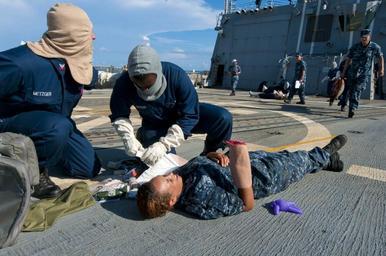 Keywords: Flickr - Official U.S. Navy Imagery - Sailors attends to a simulated amputee victim..jpg OKINAWA Japan July 18 2012 Sailors attends to a simulated amputee victim during a mass casualty drill on the flight deck of the Arleigh Burke-class guided-missile destroyer USS McCampbell DDG 85 McCampbell is forward deployed to Yokosuka Japan and is underway in the U S 7th Fleet area of responsibility U S Navy photo by Mass Communication Specialist 2nd Class Matthew R Cole/Released 120718-N-ER662-115 Join the conversation http //www facebook com/USNavy www facebook com/USNavy http //www twitter com/USNavy www twitter com/USNavy http //navylive dodlive mil navylive dodlive mil http //www flickr com/photos/usnavy/7630268216/ Sailors attends to a simulated amputee victim 2012-07-23 11 19 http //www flickr com/people/56594044 N06 Official Navy Page from United States of America MC2 Matthew Cole/U S Navy Attribution License XMP-photoshop Source Navy Visual News Service PD-USGov-Military-Navy Official U S Navy Imagery http //flickr com/photos/56594044 N06/7630268216 2012-11-12 14 52 56 cc-by-2 0 Images from United States Navy to check