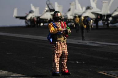 Keywords: Flickr - Official U.S. Navy Imagery - A Sailor wears a clown suit while launching aircraft..jpg PACIFIC OCEAN May 22 2012 Aircraft Launch and Recovery Equipment Officer Lt Douglas Kay wears a clown suit while launching aircraft as pilots and aircraft assigned to Carrier Air Wing CVW 17 depart the flight deck of the Nimitz-class aircraft carrier USS Carl Vinson CVN 70 and return to their home bases after nearly six months embarked Carl Vinson and CVW 17 recently completed a deployment to the U S 5th and 7th Fleet areas of operations U S Navy photo by Mass Communication Specialist Seaman George M Bell/Released 120522-N-ZI635-087 Join the conversation http //www facebook com/USNavy www facebook com/USNavy http //www twitter com/USNavy www twitter com/USNavy http //navylive dodlive mil navylive dodlive mil http //www flickr com/photos/usnavy/7261359816/ A Sailor wears a clown suit while launching aircraft 2012-05-22 19 41 http //www flickr com/people/56594044 N06 Official Navy Page from United States of America MCSN George M Bell/U S Navy U S Navy photo PD-USGov-Military-Navy Official U S Navy Imagery http //flickr com/photos/56594044 N06/7261359816 2012-11-13 13 59 39 cc-by-2 0 Images from United States Navy to check United States Navy images |