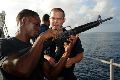 | Keywords: Flickr - Official U.S. Navy Imagery - Logistics Specialist Seaman Christian K. Jones, left, takes basic operation instruction on the M16 rifle from Cryptologic Technician 3rd Class Joshua H. Lynch..jpg GULF OF ADEN Oct 19 2011 Logistics Specialist Seaman Christian K Jones left takes basic operation instruction on the M16 rifle from Cryptologic Technician 3rd Class Joshua H Lynch during a weapons qualification drill on the forecastle aboard the guided-missile cruiser USS Anzio CG 68 Anzio is assigned to Combined Task Force 151 a multi-national mission-based task force established by the Combined Maritime Forces in January 2009 to conduct counter-piracy operations in the Red Sea Gulf of Aden Somali Basin and Arabian Sea U S Navy photo by Mass Communication Specialist 1st Class David-Michael Ross/Released 111019-N-AX571-119 http //www flickr com/photos/usnavy/6279896498/ Logistics Specialist Seaman Christian K Jones left takes basic operation instruction on the M16 rifle from Cryptologic Technician 3rd Class Joshua H Lynch 2011-10-25 08 01 http //www flickr com/people/56594044 N06 Official Navy Page from United States of America MC1 Ross/U S Navy U S Navy photo PD-USGov-Military-Navy Official U S Navy Imagery http //flickr com/photos/56594044 N06/6279896498 2012-11-14 09 56 00 cc-by-2 0 Images from United States Navy to check |