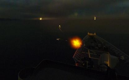 Keywords: Flickr - Official U.S. Navy Imagery - USS Gettysburg participates in Joint Warrior..jpg ATLANTIC OCEAN Oct 4 2012 The guided-missile cruiser USS Gettysburg CG 64 fires an illumination round from its Mark 45 Mod 2 5-inch 54-caliber lightweight gun toward a range on the coast of Scotland Gettysburg is taking part in Exercise Joint Warrior Joint Warrior takes place off the coast of Scotland and is designed and led by the joint tactical exercise planning staff in the United Kingdom It is intended to improve interoperability between allied navies and prepare participants for a role in a joint maritime environment during deployments America ™s Sailors are Warfighters a fast and flexible force deployed worldwide Join the conversation on social media using warfighting US Navy photo by Mass Communication Specialist 2nd Class Foster Bamford/Released 121004-N-AB355-125 Join the conversation http //www facebook com/USNavy www facebook com/USNavy http //www twitter com/USNavy www twitter com/USNavy http //navylive dodlive mil navylive dodlive mil http //www flickr com/photos/usnavy/8072198892/ USS Gettysburg participates in Joint Warrior 2012-10-04 15 54 http //www flickr com/people/56594044 N06 Official Navy Page from United States of America Mass Communication Specialist 2nd Class Foster Bamford/U S Navy US Navy photo PD-USGov-Military-Navy Official U S Navy Imagery http //flickr com/photos/56594044 N06/8072198892 2012-11-12 02 52 01 cc-by-2 0 Images from United States Navy to check