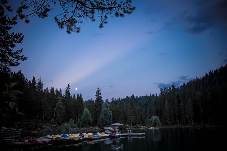 Keywords: flims graubünden switzerland caumasee forest moon sky blue hour evening night good night