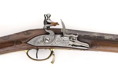 | Keywords: Flintlås från 1770 - Livrustkammaren - 96817.tif LSH artwork Cassagnard Cassaignard bössmed Jean Rousset bössmed sv Rund slätborrad blånerad pipa med åttsidig kammare oblånerad svansskruv bakåt avsmalnande svansskruvblad med kantlinjer Kammarens översida med blad- och blomrankor av påslaget guld Under kammaren inslaget otydligt märke T R under stjärna samt kontrollstämpel NC Nicolas Carterons St Etienne Stöckel II nr 1416 samt ROUSSET <br/>Riktmedel Pipans översida med platt ribba fram till det saknade kornet <br/>Fästning Fem st häften Pipan fäst med krysskruv samt fyra pipstift av stål <br/>Flintlås med plant låsbleck och hane båda med fasade kanter Bakom och på hanen graverade voluter och snäckor Graverad signatur Casaignard // Nantes Något inböjd hangren Hanens överkäke med bladgravyr Käkskruvens huvud kulformigt och tillplattat upptill graverad dekor liknande granatäpple Eldstål med åsad baksida och fals Eldstålsfjäder med fasade kanter balusterformigt löv <br/>Fästning Två låsskruvar <br/>Kort svagt böjd avtryckare <br/>Brun helstock av trä bok Kolv av fransk typ Framstocken profilerad Snidad bladdekor vid svansskruvblad och spetsrörka Beslag av förgylld mässing Bakplåt och konturera flik på kolvryggen Tungan avslutas med två utstående flikar och palmett graverad dekor två blånerade låsskruvar På kolvhalsen kartuschformiga inläggningar av silvertråd Sidbleck av mässing konturerat med graverad rokokodekor Fyra runda rörkor slät spets Varbygel av mässing med graverad dekor på bygeln Den främre armen avslutas med asymmetriskt blad den bakre med rundad spets <br/>Tillbehör <br/>Laddstock l 1405 mm av trä framtill konisk original caption Flintlås från 1770 <br/> Nyckelord Flintlåsbössa ca 1770 steel e12 - eldvapen - pipa och lås material stål - silver e8 - eldvapen - stockdekor material silvertråd - brass e7 - eldvapen - stockbeslag material mässing - gold e5 - eldvapen - pipdekor material guld - beech e3 - eldvapen - stock material bok g 3250 size mm 1417 pipa size mm 1810 LRK Casaignard Nantes anv e2 - eldvapen - lås; Cassagnard Cassaignard ROUSSET anv e1 - eldvapen - pipa; Jean Rousset N C anv e1 - eldvapen - pipa; Nicolas Carteron T R under stjärna Jean Rousset Casaignard Nantes anv e2 - eldvapen - lås; Cassagnard Cassaignard ROUSSET anv e1 - eldvapen - pipa; Jean Rousset N C anv e1 - eldvapen - pipa; Nicolas Carteron T R under stjärna Jean Rousset place of origin Nantes S t Etienne original filename lm_dig12931 40168 inventory number LRK 3622 96817 CC-BY-SA Jens Mohr <gallery caption Different images of same object > File Flintlås från 1770 - Livrustkammaren - 96819 tif File Gevärpipa från 1770 - Livrustkammaren - 96822 tif File Gevär - Livrustkammaren - 96816 tif File Gevär från 1770 - Livrustkammaren - 96821 tif File Gevär - Livrustkammaren - 96815 tif File Gevär från 1770 - Livrustkammaren - 96818 tif File Flintlås från 1770 - Livrustkammaren - 96820 tif File Gevär från 1770 - Livrustkammaren - 96823 tif </gallery> Flintlock muskets images from Livrustkammaren Flintlock muskets Jens Mohr Media contributed by LSH dim-with multiple size templates Media contributed by LSH unmatched creator Media contributed by LSH 2014-11 |