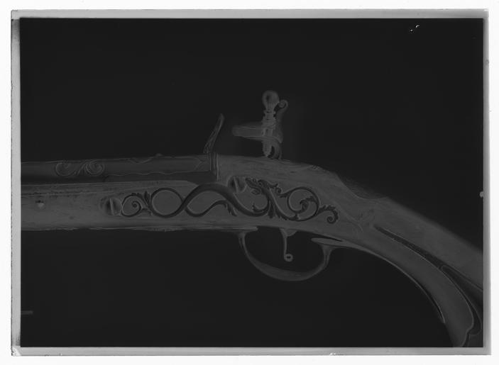 Keywords: Flintlåspistol, Hans Zimmerman, silverbeslag troligen av Daniel Schwarzkopf - Livrustkammaren - 9850-negative.tif Rund slätborrad pipa av stål kammarens bakre del kantig överfasen avbruten av snidade blad och voluter och fortsätter som en plan list fram till kornet samt med ett blad fram till mynningen Böjt svansskruvblad med rundad ände bakom skruvhålet inhugget 4 <br/>Riktmedel Vid pipbasen en profilerad vulst infilad siktskåra Spolformigt korn av silver <br/>Fästning Två häften pipan fäst med krysskruv samt ett urspr två pipstift av stål <br/><br/>Flintlås av stål med välvt låsbleck med smal kantlist graverad dekor i form av dubbla kantlinjer Graverad signatur följande hanens och fängpannans rundningar HANS // ZIMMERMAN // COPENHAGEN S-formigt svängd rundad hane med kantlist och rankdekor med drakhuvud i stålsnitt Hanskruv med x-skåra Runda käkar överkäken låg och blånerad blånerad käkskruv med balusterformigt huvud Rundad fängpanna med skålad fals blad i stålsnitt på ytteränden Batteri med välvt fängpannelock och eldstål på eldstålet kantlister och bladvolut i stålsnitt Batterifjäder med delvis fasade kanter bladdekor bet-formigt fjäderlöv <br/>Fästning Två låsskruvar <br/>Avtryckare med upprullad ände Konturerat avtryckarbleck av blånerat stål <br/><br/>Helstock av valnöt med sliten snidad bladdekor vid svansskruvbladet snidade grenar Näsband av horn Beslag av silver Kolvkappa med långa flikar på kolvsidorna blad- och pärlstavsdekor släta kantlister Oval centrumplatta med lejonmaskaron i relief på plattans insida en silverstav fäst med skruv från varbygelurtaget Under centrumplattan på kolvkappan delvis otydliga silverstämplar Köpenhamn 170 guardein-stämpel CLWM Conrad Ludolf 1679-1729 otydlig månadsstämpel samt delvis utplånad mästarstämpel D K Böje nr 315 Daniel Schwarzkopf 1699-1727 Oval slät tumplåt med graverat vapen krönt med furstlig krona sköldhållare två lejon Hjärtsköld Oranien-Chalon-Geneve åtföljd av ovan Meurs och nedan Bueren Fält 1 Nassau 2 Katzenellenbogen 3 Vianden 4 Dietz 5 Spiegelberg 6 Liessfeldt Sidbleck i form av ett genombrutet rankverk med drakhuvud En + en profilerad rörka slät spets med graverade blad Varbygeln välvd med kantlister främre armen 8-formig med symmetriskt genombrutet ändblad lång bakre arm med rundad ände blad i relief mittpå bakre armen graverat N 4 original caption - 1702 1711 walnut e3 - eldvapen - stock material valnöt - steel e127 - eldvapen - pipa lås och stockbeslag material stål - silver e47 - eldvapen - riktmedel och stockbeslag material silver - horn e7 - eldvapen - stockbeslag material horn g 960 size mm 289 pipa size mm 465 LRK Fredrik I av Sverige Johan Wilhelm Friso Nassau-Dietz prins C L M W anv e7 - eldvapen - stockbeslag; Condrad Ludolf HANS ZIMMERMAN COPENHAGEN anv e2 - eldvapen - lås; Hans Christian Zimmermann Timmermand C L M W anv e7 - eldvapen - stockbeslag; Condrad Ludolf HANS ZIMMERMAN COPENHAGEN anv e2 - eldvapen - lås; Hans Christian Zimmermann Timmermand place of origin original filename LN_B10031_012911 41224 inventory number LRK 4709 9850 CC0 Flintlåspistol Hans Zimmerman silverbeslag troligen av Daniel Schwarzkopf - Livrustkammaren - 9850 tif <gallery caption Different images of same object > File Flintlåspistol Hans Zimmerman silverbeslag troligen av Daniel Schwarzkopf - Livrustkammaren - 52660 tif File Flintlåspistol Hans Zimmerman silverbeslag troligen av Daniel Schwarzkopf - Livrustkammaren - 26974 tif File Flintlåspistol Hans Zimmerman silverbeslag troligen av Daniel Schwarzkopf - Livrustkammaren - 9857 tif </gallery> |
