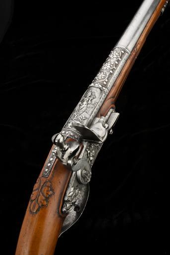 | Keywords: Flintlåspistol - Livrustkammaren - 22521.tif Rund slätborrad pipa av stål rektangulärt svagt böjt svansskruvblad På svansskruvblad och pipbas påslagen silverdekor i form av korsskrafferade kulor samt pärlstavs- och bladbårder På kammarens ovansida därframför fält med stålsnittsdekor l 54 mm kvinna i djupt urringad klänning med släp över h arm solfjäder i v hand i bakgrunden borg Därframför fält med påslagna blomrankor av silver l 52 mm Resten av pipan slät graverat ägarnamn Carl Gustaf Tessin På kammarens undersida en otydlig stämpel med bokstäver sista bokstäverna AS möjligen COLAS jfr nr 11670 <br/>Fästning Två häften Pipan fäst med bakrelåsskruven genom svansskruvplattan samt två pipstift av stål <br/><br/>Flintlås med plant låsbleck svagt fasade kanter Dekor i stålsnitt på bakspetsen hundhuvud övergående i bladfestonger framför hanen ryttare i halvrustning marskalksstav i ena handen därframför tre pikenerare stående i sänka benen syns ej S-formig platt hane hanskruvens huvud täckt av porträttbyst i relief av man fas höger allongeperuk nedvikt krage Triangulära käkar överkäken lös kantig hangren omvänt koniskt käkskruvhuvud Rundad fängpanna batteri med välvt fängpannelock plan ovansida rektangulärt eldstål med rundad överkant filad dekor nertill på ryggen liten kommaformig häl Batterifjäder med litet flikigt löv Nöt utan studel <br/>Fästning Två låsskruvar <br/>S-formig avtryckare med upprullad ände Slätt avtryckarbleck <br/><br/>Helstock av buxbom kolv med tillplattat ovalt tvärsnitt Enkel snidad bladdekor bakom svansskruvbladet däromkring samt runt svansskruvbladet inslaget bård av cirklar på kolvens högra sida inslaget hertig Karl XIII rustkammarmärke Beslag av stål kolvkappa med korta flikar på kolvsidorna dekor i stålsnitt fältläger med tält och på ena sidan en ryttare med rundsköld och kroksabel på motsatt sida en ryttare med en stav På flikarna bladrankor samt blommor Sidblecket saknas Två svagt profilerade rörkor slätt näsband Varbygel med kluven framstolpe och kort främre arm lång slät bakre arm <br/><br/>Tillbehör <br/>Laddstock av stockens trä l 279 mm original caption Flintlåspistol - LRK 11670<br/> Nyckelord Pistol Flintlåspistol Stormaktstiden ca 1650 silver e8 - eldvapen - stockdekor material silver - steel e127 - eldvapen - pipa lås och stockbeslag material stål size mm 472 size mm 287 pipa size mm 128 g 870 LRK Carl Gustaf Tessin Envoyé informator 1695-1770 Sverige Karl XIII av Sverige -Norge Gallica 1945 Musket Roer en Pistolet 1974 Livrustkammarens basutställning 1978 Från Topp till tå Nationalmuseum Läckö 2004 1700-tal CG Tessin på Läckö 2005 Basutställning COLAS jfr CMIL anv e1 - eldvapen - pipa; Ezechias Colas Carl Gustaf Tessin place of origin Sedan original filename lm_dig1230 47686 inventory number LRK 11670 22521 CC-BY-SA Göran Schmidt <gallery caption Different images of same object > File Flintlåspistol möjligen fransk ca 1650 pipan stämplad COLAS Ezechias Colas Sedan - Livrustkammaren - 9037 tif File Flintlåspistol möjligen fransk ca 1650 pipan stämplad COLAS Ezechias Colas Sedan - Livrustkammaren - 35338 tif File Flintlåspistol ca 1650 - Livrustkammaren - 13958 tif </gallery> Göran Schmidt Flintlock pistol Images from Livrustkammaren Sweden 1611-1718 Media contributed by LSH unmatched material Media contributed by LSH dim-with multiple size templates Media contributed by LSH unmatched creator Color images from Livrustkammaren Media contributed by LSH 2013-10 |