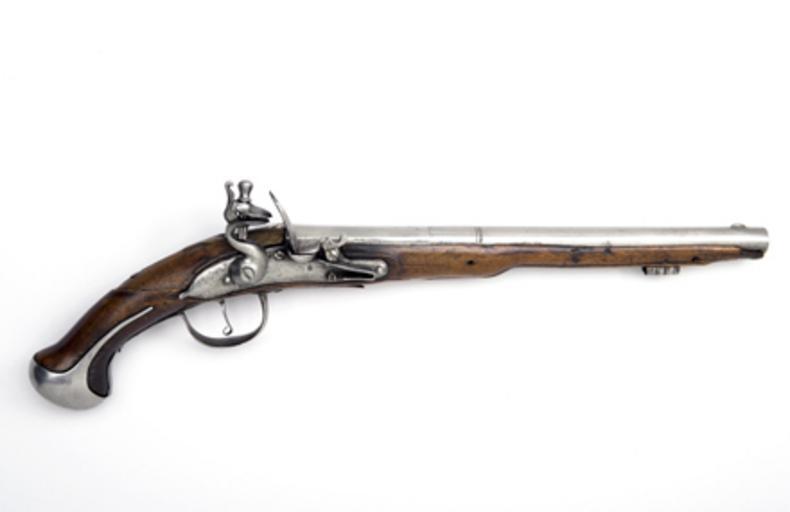 | Keywords: Flintlåspistol - Livrustkammaren - 39670.jpg  Rund slätborrad pipa med kantig kammare mjuk övergång vid övergången samt 35 mm därframför profilerade ringar På kammarens undersida på v sidofas tre stämplar - ett järnmärke en stämpel med tre trianglar samt en otydligt stämpel Ö I vinkel böjt baktill tvärt avskuret svansskruvblad <br/>Riktmedel På svansskruvbladet ett lågt ståndsikte spolformigt korn av stål <br/>Fästning Ett ursprungligen två häften Pipan fäst med krysskruv samt ett pipstift i form av en avklippt smidd spik <br/><br/>Flintlås med välvt låsbleck nedanför fängpannan en stämpel M Rundad s-formigt svängd hane runda käkar något avtagna framtill med rak kant överkäken lös rundad hangren käkskruv med kulformigt huvud Rundad fängpanna med krage Batteri med välvd eldstålsrygg batterifjäder utan fasningar och löv <br/>Fästning Två låsskruvar <br/>Svagt svängd avtryckare med upprullad ände Avtryckarbleck med rundade ändara framför avtryckarens hål M-stämpeln <br/><br/>Helstock av brunt trä valnöt med snidade kantlister runt laddstocksnot spetsrörka och svansskruvblad Bakom sidblecekt inskuret T C ligatur 1041 Rundade beslag av stål Slät kolvkappa med långa flikar en fästskruv i centrum På h flik en otydlig X-liknande stämpel S-formigt svängt slätt sidbleck bredast på mitten Profilerad överrörka Slät svagt välvd varbygel bakre armen till kolvkappan främre armen svagt rombisk med rundad spets två fästskruvar <br/><br/>Tillbehör <br/>Laddstock av trä l 345 mm ursprunglig original caption flintlåspistol - LRK 20593 end other date century 17 steel e1247 - eldvapen - pipa lås riktmedel och beslag material stål - wood e3 - eldvapen - stock material trä size mm 545 size mm 360 pipa g 1337 LRK place of origin SE original filename lm_dig2381 57145 inventory number LRK 20593 39670 CC-BY-SA Göran Schmidt Göran Schmidt Flintlock pistol Images from Livrustkammaren Media contributed by LSH dim-with multiple size templates Color images from Livrustkammaren Media contributed by LSH 2013-10 |