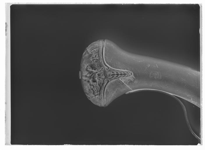 | Keywords: Flintlåspistol, möjligen fransk ca 1650, pipan stämplad: COLAS (?, Ezechias Colas, Sedan?) - Livrustkammaren - 9038-negative.tif Rund slätborrad pipa av stål rektangulärt svagt böjt svansskruvblad På svansskruvblad och pipbas påslagen silverdekor i form av korsskrafferade kulor samt pärlstavs- och bladbårder På kammarens ovansida därframför fält med stålsnittsdekor l 55 mm man i allongeperuk krönt med kurfurstekrona barfota med fotsid dräkt stående framför stadsbild vänster arm pekar mot staden höger mot en piedestal med festonger och därpå liggande krona och spira Därframför fält med påslagna blomrankor av silver l 50 mm Resten av pipan slät graverat ägarnamn Carl Gustaf Tessin På kammarens undersida en otydlig stämpel med bokstäver sista bokstäverna AS möjligen COLAS jfr nr 11670 <br/>Fästning Två häften Pipan fäst med bakre låsskruven genom svansskruvplattan samt två pipstift av stål <br/><br/>Flintlås med plant låsbleck svagt fasade kanter Dekor i stålsnitt på bakspetsen hundhuvud övergående i bladfestonger framför hanen ryttare i halvrustning marskalksstav i ena handen därframför tre pikenerare stående i sänka benen syns ej S-formig platt hane hanskruvens huvud täckt av porträttbyst i relief av man fas höger allongeperuk nedre delen bortbruten Triangulära käkar överkäken lös kantig hangren omvänt koniskt käkskruvhuvud Rundad fängpanna batteri med välvt fängpannelock plan ovansida rektangulärt eldstål med rundad överkant filad dekor nertill på ryggen liten kommaformig häl Batterifjäder med litet flikigt löv Nöt utan studel <br/>Fästning Två låsskruvar <br/>S-formig avtryckare med upprullad ände Slätt avtryckarbleck <br/><br/>Helstock av buxbom kolv med tillplattat ovalt tvärsnitt Enkel snidad bladdekor bakom svansskruvbladet däromkring samt runt svansskruvbladet inslaget bård av cirklar på kolvens högra sida inslaget hertig Karl XIII rustkammarmärke Beslag av stål kolvkappa med korta flikar på kolvsidorna dekor i stålsnitt fältläger med tält och på ena sidan två ryttare i förgrunden I bakgrunden till höger två pikenerare till vänster en trumslagare På andra sidan i förgrunden en ryttare till vänster sittande kvinna till höger fotsoldater på flikarna bladrankor samt blommor Sidblecket saknas Två svagt profilerade rörkor slätt näsband Varbygel med kluven framstolpe och kort främre arm lång slät bakre arm <br/><br/>Tillbehör <br/>Laddstock av stockens trä l 279 mm original caption ca 1650 steel e127 - eldvapen - pipa lås och stockbeslag material stål - silver e8 - eldvapen - stockdekor material silver size mm 467 size mm 287 pipa size mm 125 g 840 LRK Carl Gustaf Tessin Envoyé informator 1695-1770 Sverige Karl XIII av Sverige -Norge Gallica 1945 Livrustkammarens basutställning 1978 Från Topp till tå Nationalmuseum Läckö 2004 1700-tal CG Tessin på Läckö 2005 Basutställning COLAS jfr CMIL anv e1 - eldvapen - pipa; Ezechias Colas Carl Gustaf Tessin place of origin Sedan original filename LN_B01911_004791 47685 inventory number LRK 11669 9038 CC0 Flintlåspistol möjligen fransk ca 1650 pipan stämplad COLAS Ezechias Colas Sedan - Livrustkammaren - 9038 tif <gallery caption Different images of same object > File Flintlåspistol möjligen fransk ca 1650 pipan stämplad COLAS Ezechias Colas Sedan - Livrustkammaren - 26161 tif File Flintlåspistol möjligen fransk ca 1650 pipan stämplad COLAS Ezechias Colas Sedan - Livrustkammaren - 1101 tif File Flintlåspistol möjligen fransk ca 1650 pipan stämplad COLAS Ezechias Colas Sedan - Livrustkammaren - 51930 tif </gallery> |
