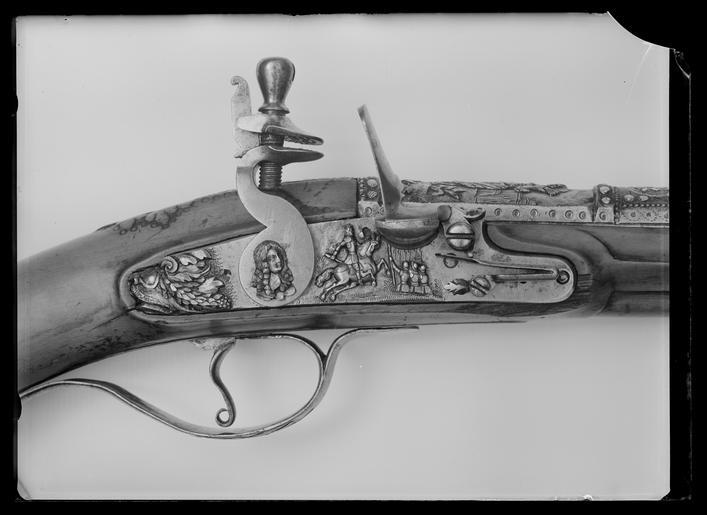 | Keywords: Flintlåspistol, möjligen fransk ca 1650, pipan stämplad: COLAS (?, Ezechias Colas, Sedan?) - Livrustkammaren - 9037.tif Rund slätborrad pipa av stål rektangulärt svagt böjt svansskruvblad På svansskruvblad och pipbas påslagen silverdekor i form av korsskrafferade kulor samt pärlstavs- och bladbårder På kammarens ovansida därframför fält med stålsnittsdekor l 54 mm kvinna i djupt urringad klänning med släp över h arm solfjäder i v hand i bakgrunden borg Därframför fält med påslagna blomrankor av silver l 52 mm Resten av pipan slät graverat ägarnamn Carl Gustaf Tessin På kammarens undersida en otydlig stämpel med bokstäver sista bokstäverna AS möjligen COLAS jfr nr 11670 <br/>Fästning Två häften Pipan fäst med bakrelåsskruven genom svansskruvplattan samt två pipstift av stål <br/><br/>Flintlås med plant låsbleck svagt fasade kanter Dekor i stålsnitt på bakspetsen hundhuvud övergående i bladfestonger framför hanen ryttare i halvrustning marskalksstav i ena handen därframför tre pikenerare stående i sänka benen syns ej S-formig platt hane hanskruvens huvud täckt av porträttbyst i relief av man fas höger allongeperuk nedvikt krage Triangulära käkar överkäken lös kantig hangren omvänt koniskt käkskruvhuvud Rundad fängpanna batteri med välvt fängpannelock plan ovansida rektangulärt eldstål med rundad överkant filad dekor nertill på ryggen liten kommaformig häl Batterifjäder med litet flikigt löv Nöt utan studel <br/>Fästning Två låsskruvar <br/>S-formig avtryckare med upprullad ände Slätt avtryckarbleck <br/><br/>Helstock av buxbom kolv med tillplattat ovalt tvärsnitt Enkel snidad bladdekor bakom svansskruvbladet däromkring samt runt svansskruvbladet inslaget bård av cirklar på kolvens högra sida inslaget hertig Karl XIII rustkammarmärke Beslag av stål kolvkappa med korta flikar på kolvsidorna dekor i stålsnitt fältläger med tält och på ena sidan en ryttare med rundsköld och kroksabel på motsatt sida en ryttare med en stav På flikarna bladrankor samt blommor Sidblecket saknas Två svagt profilerade rörkor slätt näsband Varbygel med kluven framstolpe och kort främre arm lång slät bakre arm <br/><br/>Tillbehör <br/>Laddstock av stockens trä l 279 mm original caption ca 1650 silver e8 - eldvapen - stockdekor material silver - steel e127 - eldvapen - pipa lås och stockbeslag material stål size mm 472 size mm 287 pipa size mm 128 g 870 LRK Carl Gustaf Tessin Envoyé informator 1695-1770 Sverige Karl XIII av Sverige -Norge Gallica 1945 Musket Roer en Pistolet 1974 Livrustkammarens basutställning 1978 Från Topp till tå Nationalmuseum Läckö 2004 1700-tal CG Tessin på Läckö 2005 Basutställning COLAS jfr CMIL anv e1 - eldvapen - pipa; Ezechias Colas Carl Gustaf Tessin place of origin Sedan original filename LN_B01901_004781 47686 inventory number LRK 11670 9037 CC0 Flintlåspistol möjligen fransk ca 1650 pipan stämplad COLAS Ezechias Colas Sedan - Livrustkammaren - 9037-negative tif <gallery caption Different images of same object > File Flintlåspistol möjligen fransk ca 1650 pipan stämplad COLAS Ezechias Colas Sedan - Livrustkammaren - 35338 tif File Flintlåspistol - Livrustkammaren - 22521 tif File Flintlåspistol ca 1650 - Livrustkammaren - 13958 tif </gallery> Flintlock pistol Images from Livrustkammaren Media contributed by LSH unmatched material Media contributed by LSH dim-with multiple size templates Media contributed by LSH unmatched creator Media contributed by LSH 2013-10 Flintlåspistol, möjligen fransk ca 1650, pipan stämplad: COLAS (?, Ezechias Colas, Sedan?) - Livrustkammaren - 9037.tif Rund slätborrad pipa av stål rektangulärt svagt böjt svansskruvblad På svansskruvblad och pipbas påslagen silverdekor i form av korsskrafferade kulor samt pärlstavs- och bladbårder På kammarens ovansida därframför fält med stålsnittsdekor l 54 mm kvinna i djupt urringad klänning med släp över h arm solfjäder i v hand i bakgrunden borg Därframför fält med påslagna blomrankor av silver l 52 mm Resten av pipan slät graverat ägarnamn Carl Gustaf Tessin På kammarens undersida en otydlig stämpel med bokstäver sista bokstäverna AS möjligen COLAS jfr nr 11670 <br/>Fästning Två häften Pipan fäst med bakrelåsskruven genom svansskruvplattan samt två pipstift av stål <br/><br/>Flintlås med plant låsbleck svagt fasade kanter Dekor i stålsnitt på bakspetsen hundhuvud övergående i bladfestonger framför hanen ryttare i halvrustning marskalksstav i ena handen därframför tre pikenerare stående i sänka benen syns ej S-formig platt hane hanskruvens huvud täckt av porträttbyst i relief av man fas höger allongeperuk nedvikt krage Triangulära käkar överkäken lös kantig hangren omvänt koniskt käkskruvhuvud Rundad fängpanna batteri med välvt fängpannelock plan ovansida rektangulärt eldstål med rundad överkant filad dekor nertill på ryggen liten kommaformig häl Batterifjäder med litet flikigt löv Nöt utan studel <br/>Fästning Två låsskruvar <br/>S-formig avtryckare med upprullad ände Slätt avtryckarbleck <br/><br/>Helstock av buxbom kolv med tillplattat ovalt tvärsnitt Enkel snidad bladdekor bakom svansskruvbladet däromkring samt runt svansskruvbladet inslaget bård av cirklar på kolvens högra sida inslaget hertig Karl XIII rustkammarmärke Beslag av stål kolvkappa med korta flikar på kolvsidorna dekor i stålsnitt fältläger med tält och på ena sidan en ryttare med rundsköld och kroksabel på motsatt sida en ryttare med en stav På flikarna bladrankor samt blommor Sidblecket saknas Två svagt profilerade rörkor slätt näsband Varbygel med kluven framstolpe och kort främre arm lång slät bakre arm <br/><br/>Tillbehör <br/>Laddstock av stockens trä l 279 mm original caption ca 1650 silver e8 - eldvapen - stockdekor material silver - steel e127 - eldvapen - pipa lås och stockbeslag material stål size mm 472 size mm 287
