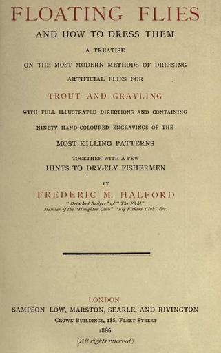 Keywords: FloatingFliesandHowToDressThem.JPG Title page from Floating Flies and How to Dress Them Frederic M Halford 1886 Extracted from Public Domain PDF version of above work from the Internet Archive 2008-10 Mike Cline PD-old Fly fishing literature |