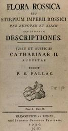 | Keywords: FLORA ROSSICA seu Stirpium Imperii Rossici per Europam et Asiam - 1790.jpg en Cover page book «Flora rossica» ru Титульный лист книги «Flora rossica» http //www narodnz co nz/elessar/2007/07/05/flora-rossica-seu-stirpium-imperii-rossici-per-europam-et-asiam-1790/ Peter Simon Pallas 1790 PD-old-100 Peter Simon Pallas |