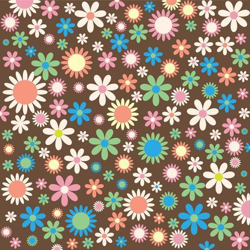 Keywords: floral flowers flowery retro funky 60s wallpaper background colorful scrapbooking illustration brown green blue pink