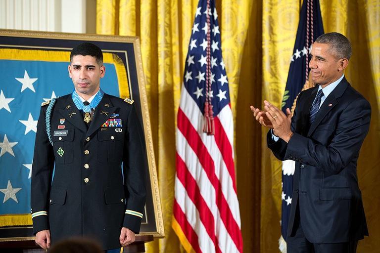Keywords: Florent Groberg awarded Medal of Honor.jpg en Retired Army Capt Florent Groberg is awarded the Medal of Honor by President Barack Obama at a White House ceremony Groberg is the first foreign-born Medal of Honor recipient of the War in Afghanistan and the 13th overall 2015-11-12 https //twitter com/POTUS/status/664853410135613440 Creator Pete Souza other versions PD-USGov Uploaded with UploadWizard Photographs of Army Medal of Honor recipients Photographs by Pete Souza Medal of Honor presentation ceremony for Florent Groberg Two men Men wearing neckties Photographs of military people in uniform |