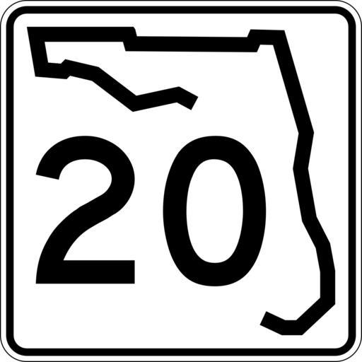 Keywords: Florida 20.svg 24 in by 24 in 600 mm by 600 mm Florida State Road shield made to the specifications of the http //www dot state fl us/rddesign/rd/RTDS/17355s1-12of12 pdf sign detail Uses the http //www triskele com/fonts/index html Roadgeek 2005 fonts United States law does not permit the copyrighting of typeface designs and the fonts are meant to be copies of a U S Government-produced work anyway The outside border has a width of 1 1/16 in and a color of black so it shows up; in reality signs have no outside border Note that the drawing does not provide the border width or curve radii The previous page does but seems very inaccurate Thus those measurements are approximated from the drawing The state outline is extracted from the PDF and cleaned up to make the inside match the outside own SPUI spuiother Florida State Road shields 020 20 number