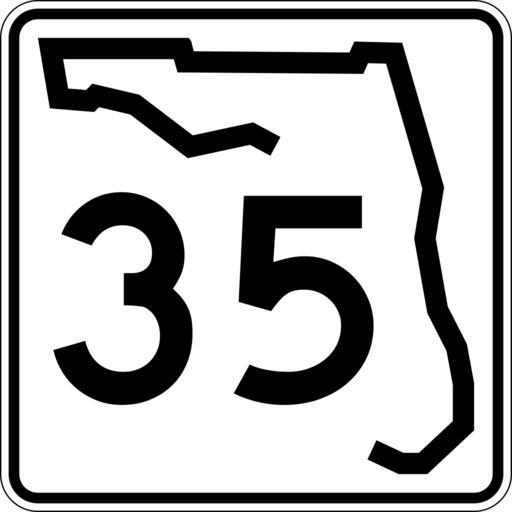 | Keywords: Florida 35.svg 24 in by 24 in 600 mm by 600 mm Florida State Road shield made to the specifications of the http //www dot state fl us/rddesign/rd/RTDS/17355s1-12of12 pdf sign detail Uses the http //www triskele com/fonts/index html Roadgeek 2005 fonts United States law does not permit the copyrighting of typeface designs and the fonts are meant to be copies of a U S Government-produced work anyway The outside border has a width of 1 1/16 in and a color of black so it shows up; in reality signs have no outside border Note that the drawing does not provide the border width or curve radii The previous page does but seems very inaccurate Thus those measurements are approximated from the drawing The state outline is extracted from the PDF and cleaned up to make the inside match the outside own SPUI spuiother Florida State Road shields 035 35 number |