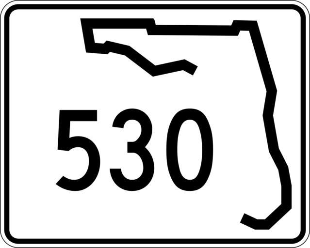 | Keywords: Florida 530.svg 30 in by 24 in 750 mm by 600 mm Florida State Road shield made to the specifications of the http //www dot state fl us/rddesign/rd/RTDS/17355s1-12of12 pdf sign detail Uses the http //www triskele com/fonts/index html Roadgeek 2005 fonts United States law does not permit the copyrighting of typeface designs and the fonts are meant to be copies of a U S Government-produced work anyway The outside border has a width of 1 1/16 in and a color of black so it shows up; in reality signs have no outside border Note that the drawing does not provide the border width or curve radii The previous page does but seems very inaccurate Thus those measurements are approximated from the drawing The state outline is extracted from the PDF and cleaned up to make the inside match the outside own SPUI spuiother Florida State Road shields 530 530 number |