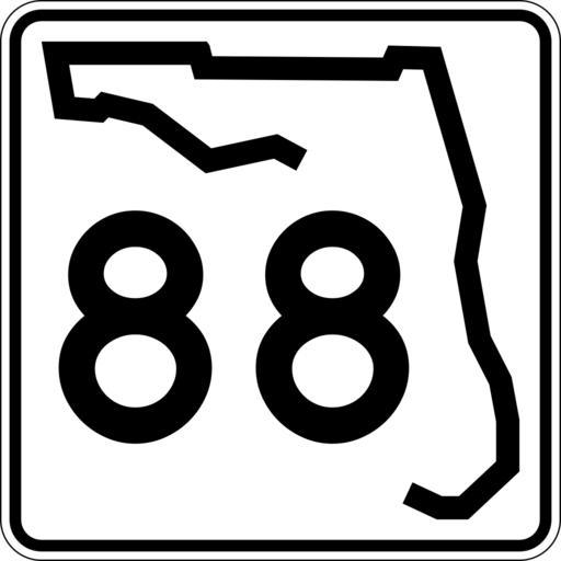 | Keywords: Florida 88.svg 24 in by 24 in 600 mm by 600 mm Florida State Road shield made to the specifications of the http //www dot state fl us/rddesign/rd/RTDS/17355s1-12of12 pdf sign detail Uses the http //www triskele com/fonts/index html Roadgeek 2005 fonts United States law does not permit the copyrighting of typeface designs and the fonts are meant to be copies of a U S Government-produced work anyway The outside border has a width of 1 1/16 in and a color of black so it shows up; in reality signs have no outside border Note that the drawing does not provide the border width or curve radii The previous page does but seems very inaccurate Thus those measurements are approximated from the drawing The state outline is extracted from the PDF and cleaned up to make the inside match the outside own SPUI spuiother Florida State Road shields 088 88 number |