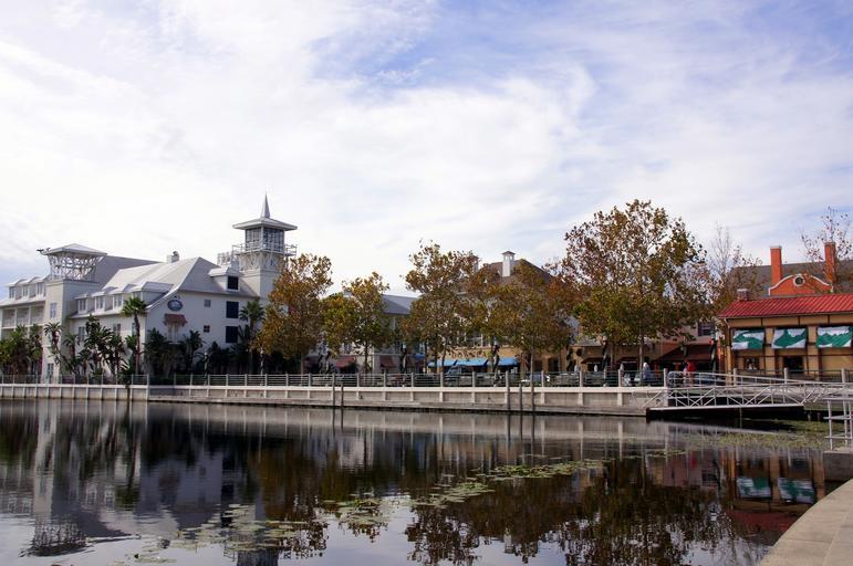 Keywords: florida celebration planned city place lake bank usa building