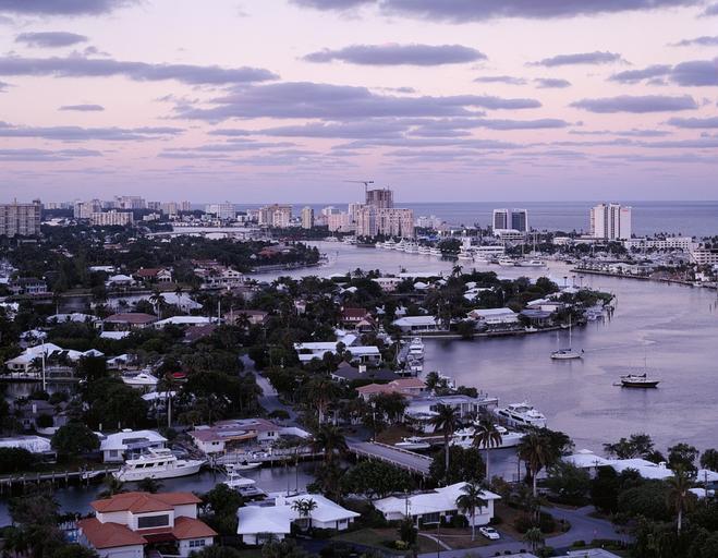 Keywords: florida fort lauderdale beach water dusk evening sunset sky tropical boats waterway ocean palm trees coast coastal canal tourism city usa