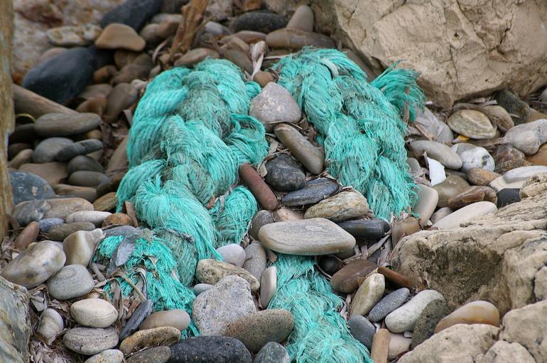 Keywords: flotsam beach sea ocean water coast pebbles stones washed up on rope sun