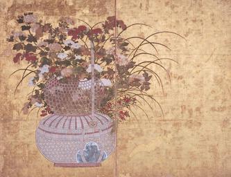 Keywords: Flower Basket (Shokoji Takaoka).jpg en Flower Basket Shokoji Takaoka Toyama Japan ja 興寺 物 紙 著色花篭図 http //www2 tkc pref toyama jp/general/stdydtl aspx stdycd 00084211 libcd Anonymous Edo-period artist early Edo period pre-1868 PD-old-100 Paintings of the Edo period Byōbu Shoko-ji Takaoka |