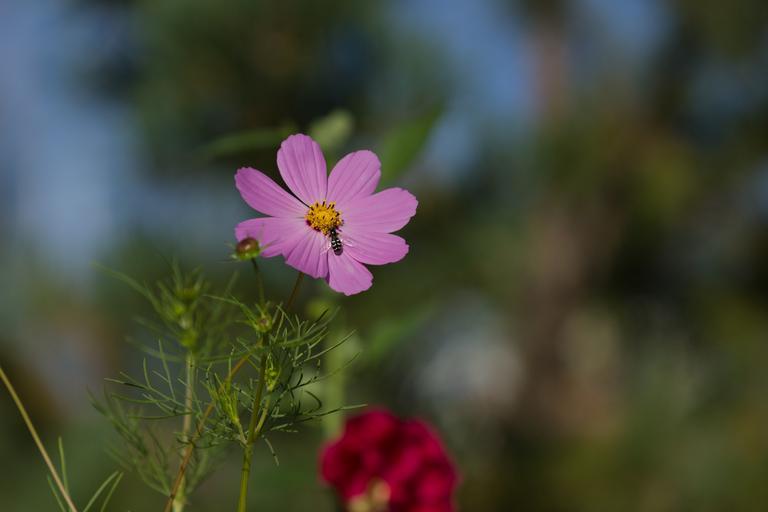 Keywords: flower bee sunshine sunflower insect spring cosmos flowers