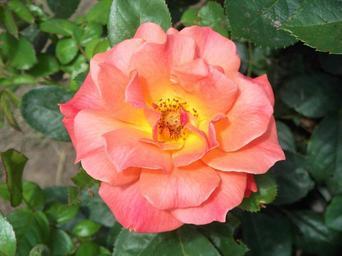 Keywords: flower bloom blossom rose peach orange yellow garden spring summer thorn bush nature shrub bud leaf green