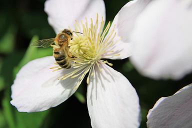 Keywords: flower blossom bloom bloom pink plant pistil yellow bee sprinkle pollen nature flora beautiful color flowers flying insects macro