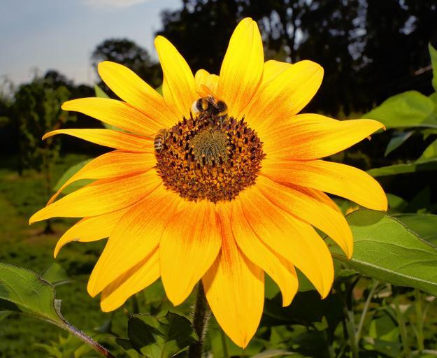 Keywords: flower blossom bloom sun flower close yellow flower color yellow back light colorful garden pollination hummel bee summer mood