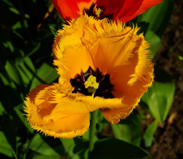 Keywords: flower blossom bloom tulip fransen yellow nature plant close spring yellow flower filigree colorful bright eye catcher front yard sunny flora beautiful pistil flower garden garden plant