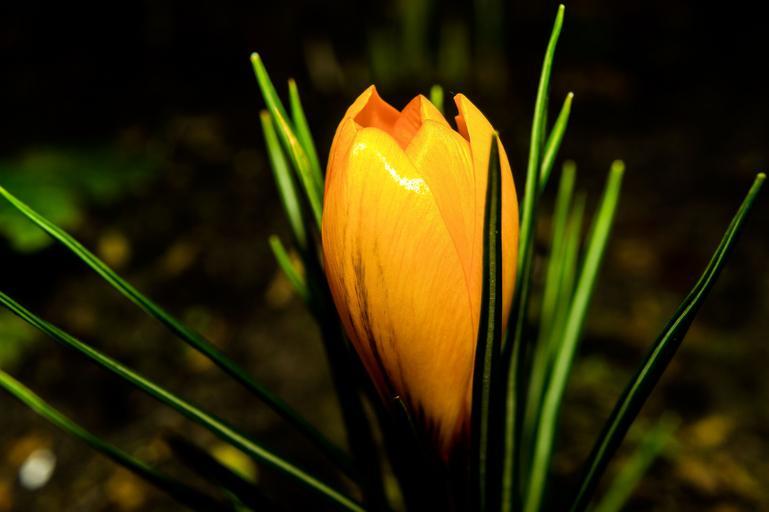 Keywords: flower blossom bloom winter crocus yellow plant close color orange nature yellow flower