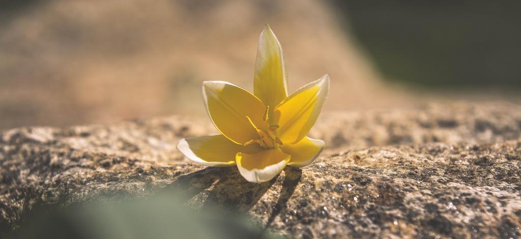 Keywords: flower blossom bloom yellow-white star tulip small star tulip stone spring flower nature retro look evening sun sunlight close