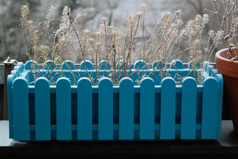 Keywords: flower box flowers winter frozen frost cold icy blue
