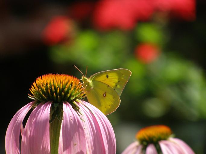 Keywords: flower butterfly pink yellow summer garden macro blossom nature insect