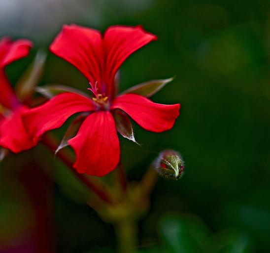 Keywords: flower geranium pelargonium thapsus full bloom the petals the delicacy summer stamens red petals a flower garden blooming flora garden flowers closeup bud