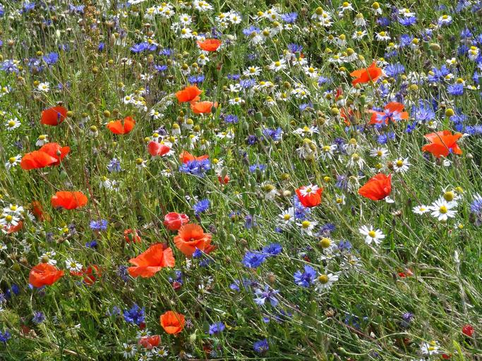 Keywords: flower meadow klatschmohn cornflowers daisies