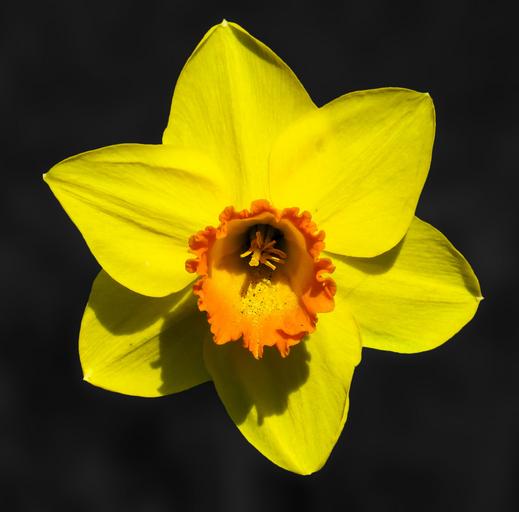 Keywords: flower narcissus blossom bloom yellow spring close macro isolated orange