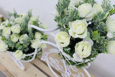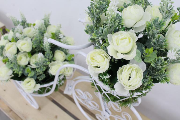 Keywords: flower pink flower white flower garden bicycle bouquet cheerful blooming season sweet petals flora garden