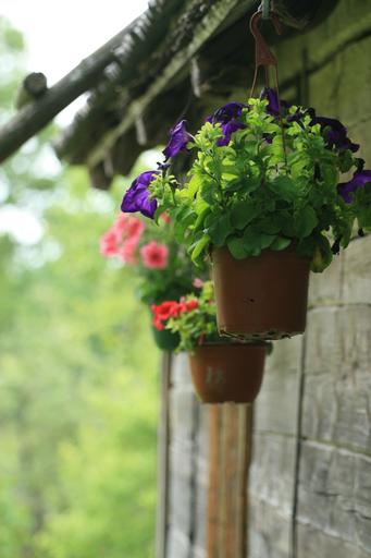Keywords: flower pot potted plant flowers hanging outdoors decoration garden