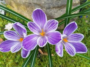 Keywords: flower purple crocus white green spring plant garden bed blossom bloom bloom crocoideae