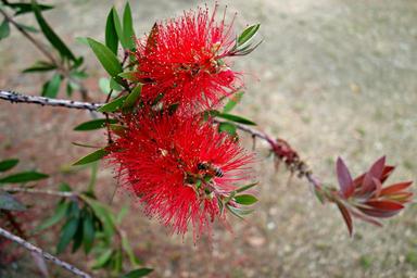 Keywords: flower red flower spiky flower pistil branch bough wasp insect feeding summer